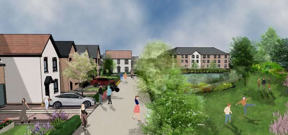 A brown field regeneration project consisting of 72 homes and a 77 bed care home. The site benefitted from a lapsed approval but the site has been redisigned to deliver a mixed community that provides a range of single family homes. The development will retain and enhance the green landscape setting and offer biodiversity improvements.